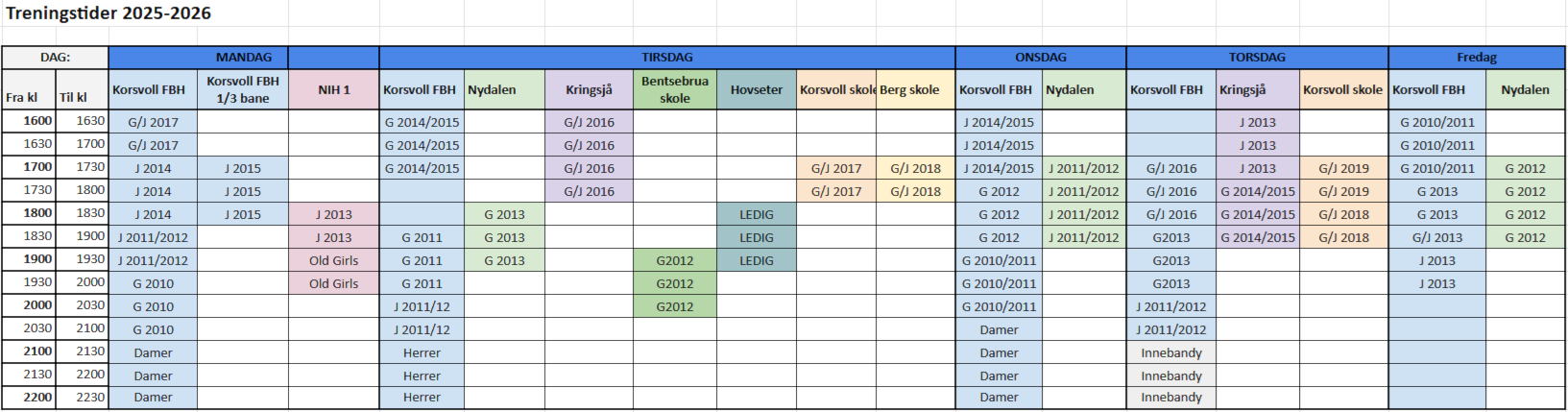 Korsvoll hallen fredager: Brukes av og til til Åpen hall, flyball, camper ol.
